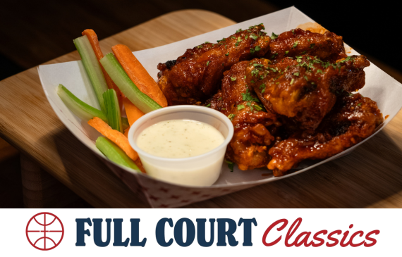 Showcasing a lineup of signature wings in Buffalo, BBQ, Garlic Parm, and Korean flavors.